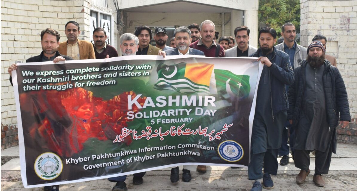 Staff Reporter Peshawar: A solidarity walk was organized at the Khyber Pakhtunkhwa Information Commission to protest against the illegal Indian…